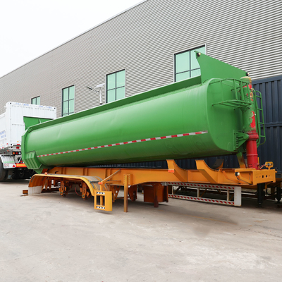 Los remolques de descarga tienen la capacidad de descargar automáticamente el material en un cierto ángulo, lo que ahorra significativamente tiempo y mano de obra, acorta el ciclo de transporte, mejora la eficiencia de la producción,y reduce el costo del transporteEl carro puede inclinarse hacia atrás o hacia los laterales.