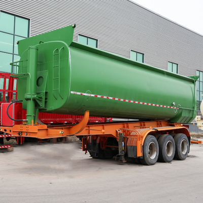 Los remolques de descarga tienen la capacidad de descargar automáticamente el material en un cierto ángulo, lo que ahorra significativamente tiempo y mano de obra, acorta el ciclo de transporte, mejora la eficiencia de la producción,y reduce el costo del transporteEl carro puede inclinarse hacia atrás o hacia los laterales.
