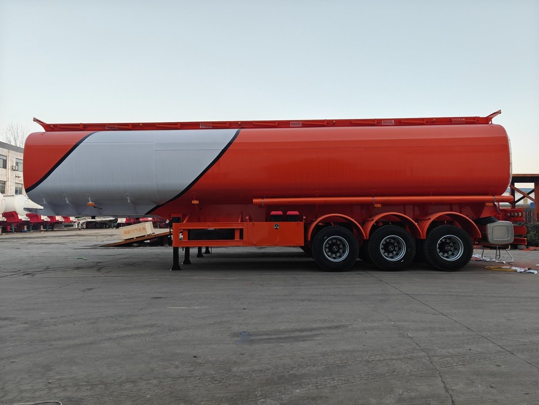 El cuerpo del tanque del remolque del tanque de combustible puede estar hecho de diferentes materiales como aluminio, acero al carbono y acero inoxidable.y el extremo inferior de la placa de deflector está diseñado con agujeros para reducir el impacto del combustible en el tanque y mejorar la resistencia del tanque.
