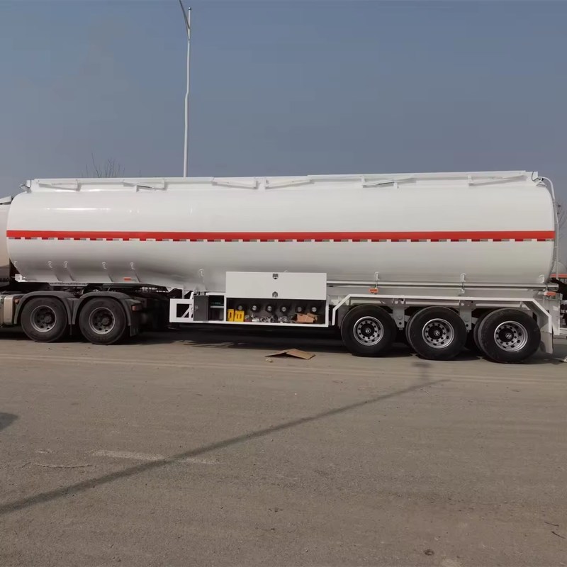 El cuerpo del tanque del remolque del tanque de combustible puede estar hecho de diferentes materiales como aluminio, acero al carbono y acero inoxidable.y el extremo inferior de la placa de deflector está diseñado con agujeros para reducir el impacto del combustible en el tanque y mejorar la resistencia del tanque.
